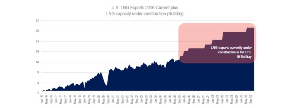 In the short term over the next 18 months, during which 5.5 Bcf per day of LNG capacity will be coming online, supplies will be forced to come from accessible shale plays closer to the Gulf, most likely dry gas from the Haynesville in west Louisiana/East Texas, associated natural gas from oil in the Permian, and the blended economics of both oil and natural gas in the Eagle Ford in south Texas. We are already seeing some growth in the form of added rigs in the Haynesville, which has increased 11 rigs since August 2024.